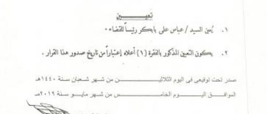 بعد الاطلاع على المرسوم الدستوري رقم (3) لسنة 2019م وقرار المجلس العسكري الانتقالي رقم (73) لسنة 2019م وعملاً باحكام المادة 2/ب من المرسوم الدستوري رقم "8" لسنة 2019م والمادة (18) من قانون الهيئة القضائية لسنة 1986م .