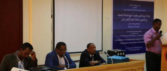 أقام معهد العلوم القضائية والقانونية بالتعاون مع منظمة الهجرة الدولية ورشة عمل حول تعزيز مقدرات أجهزة العدالة الجنائية في التحقيق ومحاكمة قضايا الإتجار بالبشر واستهدفت الورشة عدد من القضاة ووكلاء النيابات والشرطة وذلك في الفترة من 24-27فبراير الماضي بقاعة الجهاز القضائي بشمال دارفور.