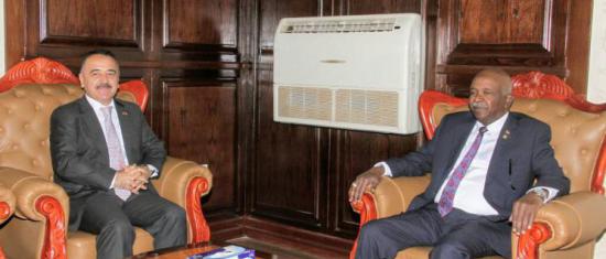التقي صاحب السعادة مولانا البروفيسور /حيدر احمد دفع الله رئيس القضاء بمكتبه اليوم بالسيد /عرفان نذير اوقلو السفير التركي بالخرطوم