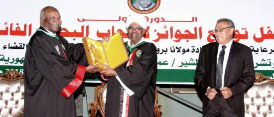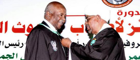 يهنئ سعادة السفير/بسام محمد القنبدي ـــ سفير دولة الكويت بالسودان ، البروفيسور/ حيدر احمد دفع الله - رئيس القضاء ـــ بمناسبة تكريمه من قبل فخامة الرئيس المشير/ عمر حسن أحمد البشير - رئيس الجمهورية ، بمنحه (نجمة الانجاز) ومنح السلطة القضائية التي علي دفة قيادتها رئيس القضاء (وسام الانجاز) تقديرا