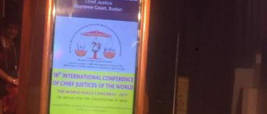 خاطب صاحب السعاده بروفيسور حيدر احمد دفع الله مؤتمر رؤساء القضاء في العالم المنعقد بمدينة لكناو بالهند بمشاركة سبعة وخمسون دولة واكثر من ثلاثمائة مشارك حيث ثمن خلال كلمته أهداف المؤتمر التي تدعو الي تعزيز سيادة حكم القانون والعمل علي إيجاد حياة أفضل للاجيال القادمة في عالم ينعم بالامن والسلام ‘دا