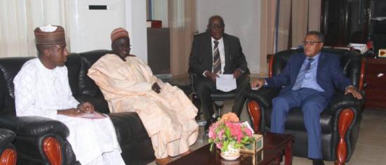 التقي سعادة مولانا محجوب الأمين رئيس القضاء بالانابة بمكتبة اليوم بالسيد موسي سابان مامان سفير جمهورية نيجيريا الفيدرالية بحضور مولانا عبد المجيد إدريس نائب رئيس القضاء وعدد من رؤساء الإدارات بالسلطة القضائية وتطرق اللقاء لتفعيل أوجه التعاون القضائي المشترك بين السودان ونيجيريا لاسيما تفعيل مشرو