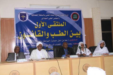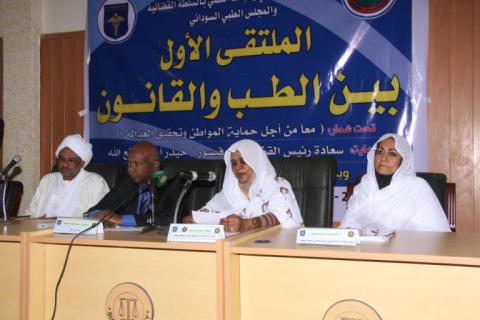 انعقد بدار قضاة السودان اليوم الملتقى الأول بين الطب والقانون الذي تنظمه السلطة القضائية والمجلس الطبي السوداني تحت شعار (معا.من اجل حماية المريض وتحقيق العدالة) برعاية كريمة من رئيس القضاء بحضور الدكتور ادريس إبراهيم جميل وزير العدل والسيد طارق توفيق وزير رئاسة مجلس الوزراء ومولانا عمر احمد محمد النائب العام وبوفيسور زين العابدين عبد الرحيم كرار رئيس المجلس الطبي ومولانا محجوب الأمين نائب رئيس القضاء ومولانا ابتسام أحمد عبد الله رئيس إدارة المكتب الفني والبحث العلمي وعدد من رؤساء الإدارات ورؤساء الأجهزة القضائية وعدد من القضاة والمستشارين والمحامين والأجهزة العدلية الاخري.