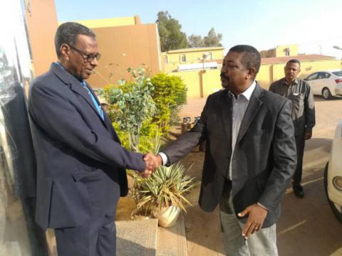 استقبل مولانا تاج الأصفياء خليل محمد علي رئيس الجهاز القضائي لولاية نهر النيل بمكتبه صباح اليوم الأستاذ الحسن عمر الحويج وزير الزراعة والموارد بالولاية وذلك في إطار زياراته التعريفية للمؤسسات والأجهزة والمصالح الحكومية بنهر النيل.