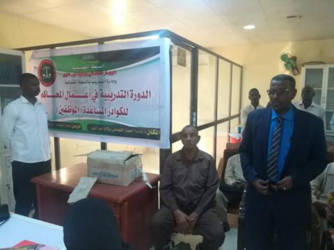 دشن صباح  اليوم مولانا تاج الأصفياء خليل محمد علي رئيس الجهاز القضائي لولاية نهر النيل الدورة التدريبية في أعمال المحاكم للكوادر المساعدة (موظفين ) بالتعاون مع إدارة التدريب بالسلطة القضائية خلال الفترة من 1 _ ٥ ديسمبر 2019.