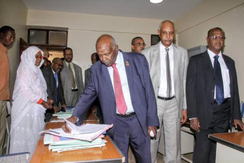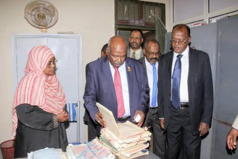 تفقد صاحب السعادة مولانا بروفيسور حيدر أحمد دفع الله رئيس القضاء اليوم سير العمل بعدد من مجمعات محاكم الجهاز القضائي بحري وشرق النيل يرافقه الأمين العام لشؤون القضاة ورئيس عام إدارة المحاكم والمسجل العام للأراضي ورئيس الجهاز القضائي بحري وشرق النيل ، حيث تفقد سير العمل بالمحكمة المدنية والشرعية والجنائية ومحكمة البيئة والعوائد بحري وسط وتسجيلات اراضي بحري وسط وزار مكاتب الشرطة القضائية و الحراسات ومجمع محاكم الحاج يوسف الجنائية والمدنية والشرعية وزار مكاتب الموظفين واجتمع بقضاة الاستئناف بالجهاز القضائي بحري ووجه بسرعة النظر في الاستئنافات مع ضرورة تسبييب الأحكام، كما اطمأن على سير العمل في المباني تحت التشييد وزار غرفة المحامين واستمع اليهم واكد على اهمية التنسيق المشترك لإكمال العملية العدلية.