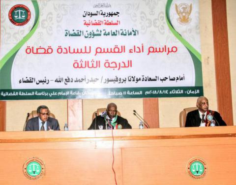 أدي القسم اليوم بقاعة الامام علي بالسلطة القضائية 95 قاضيا من قضاة الدرجة الثالثة المترقين امام صاحب السعادة مولانا البروفيسور حيدر احمد دفع الله رئيس القضاء بحضور نائبي رئيس القضاء والامين العام للمفوضية القومية للخدمة القضائية والامين العام لشئون القضاة وعدد من قيادات السلطة القضائية .